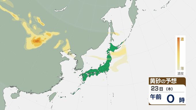 【黄砂情報】22日(火)も日本列島に「黄砂」飛来…いつどこに飛んでくる?気象庁の黄砂解析予測図【25日(土)にかけての黄砂飛来シミュレーション】