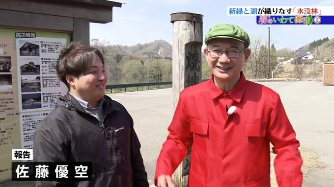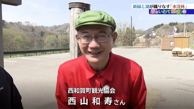 取材に入ったこの日は、西和賀町観光協会の西山和寿さんと水没林の見どころを巡ります。
