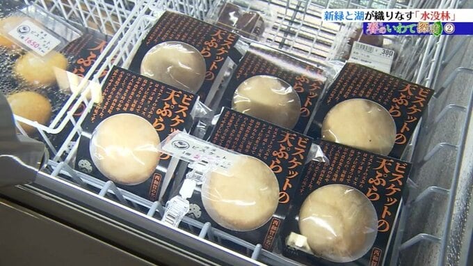 ここでは特産品販売コーナーやそば処が設けられていて、ビスケットに衣をつけて揚げた町の郷土食「ビスケット天ぷら」が販売されています。