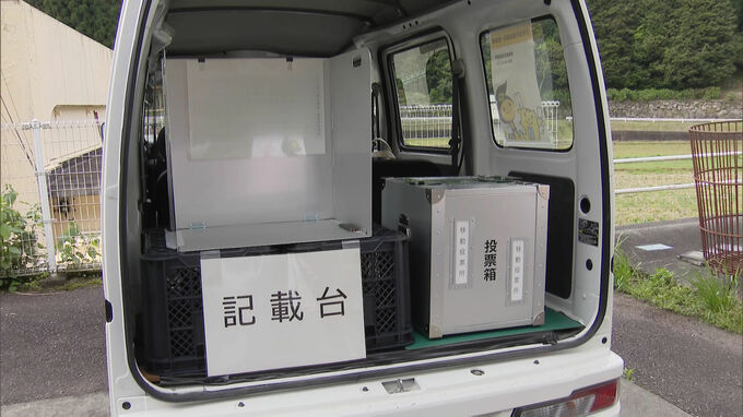 4月26日に投開票される福岡県うきは市の市議会議員選挙を前に投票率の向上につなげようと山間部などに移動式の期日前投票所が設置されています。22日朝、うきは市小塩コミュニティーセンターに到着したのは車内に…