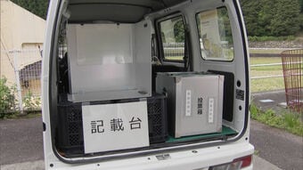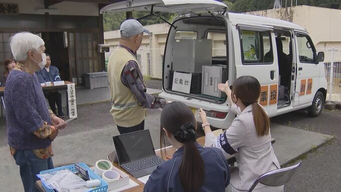 22日朝、うきは市小塩コミュニティーセンターに到着したのは車内に投票箱などを設置した移動式の投票所です。