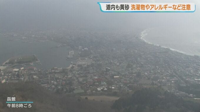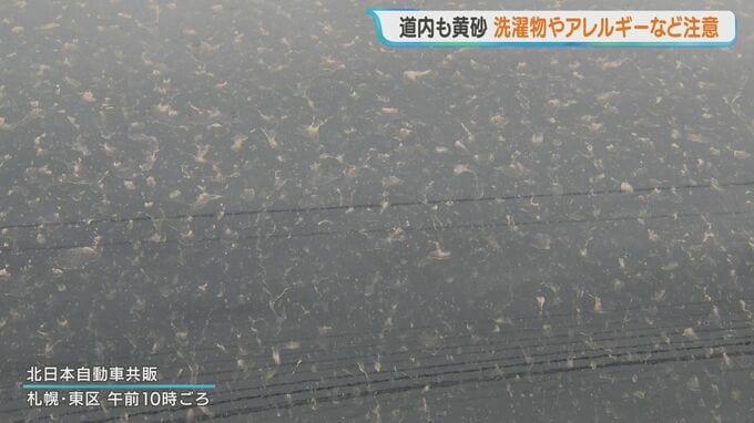 札幌管区気象台によりますと、黄砂は、太平洋側を中心に道内の広い範囲で予想されていて、屋外の洗濯物や車への付着、アレルギーのある人などは注意が必要です。