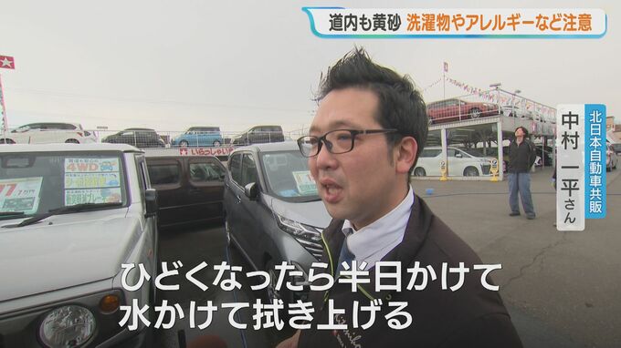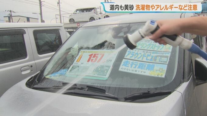 一方、札幌市内の中古車販売店では、車に茶色い砂のようなものが付着していて、従業員は、洗車に追われています。