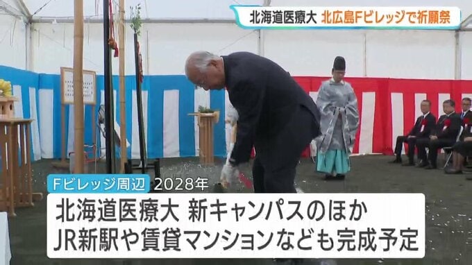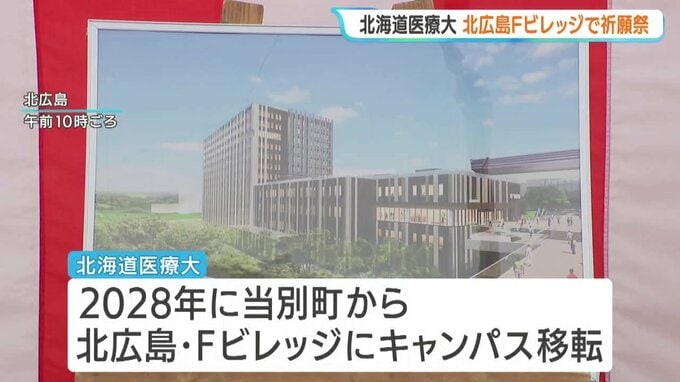 2028年に北広島市のFビレッジに移転する北海道医療大学が、新キャンパスの着工を前に、安全祈願祭を行いました。