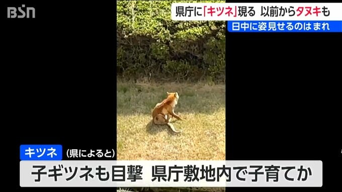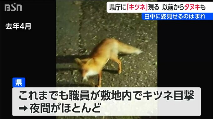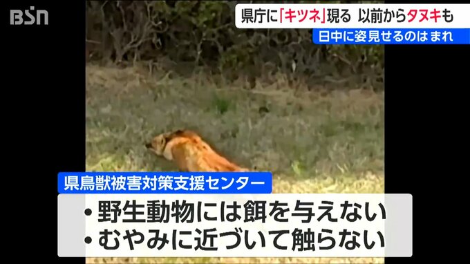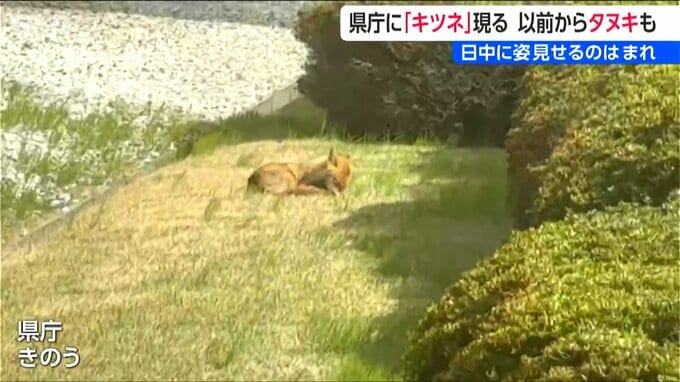 県によりますと、これまでも職員が県庁の敷地内で何度かキツネを目撃。ただ、夜間が多く、こうして昼間に姿を見せるのはめったにないそうです。