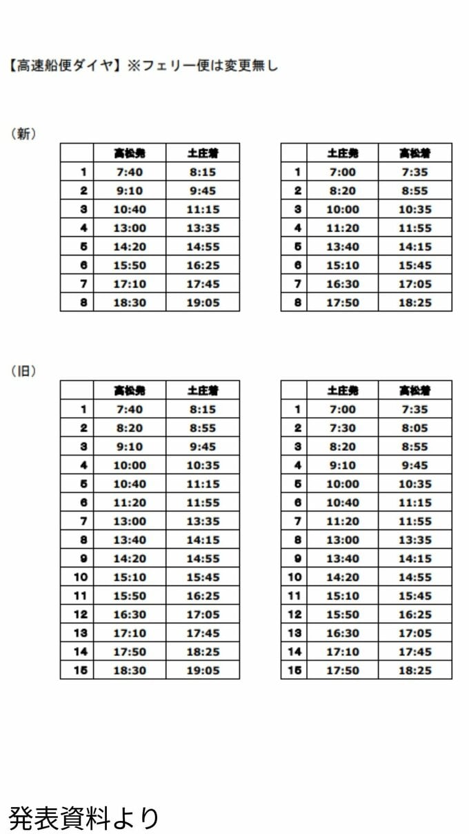 小豆島フェリーの高速船(高松~土庄航路)が一時的に減便へ 中東情勢による燃料油高騰の影響を受け【香川】 RSK山陽放送 2026年4月22日(水) 14:15 国内 減便後のダイヤ ▶この記事を最初から読む
