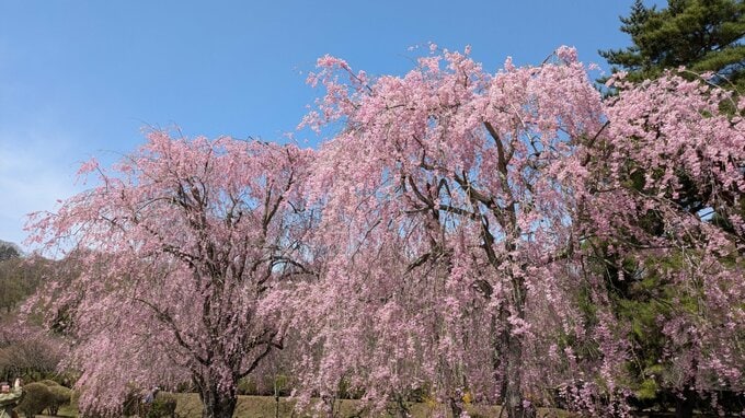 シダレザクラは、23日には満開を迎えそうですが、敷地内ではモモの花も咲き始め、これからサクラとモモ両方の花が楽しめそうです。