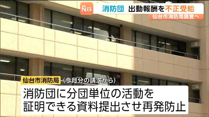 仙台市内の消防団が、実際には活動していない出動報酬を不正に受給していたことが分かり、仙台市消防局は、2025年度までの6年間の各消防団の会計の調査に乗り出しました。