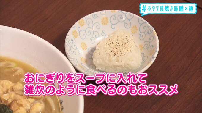 ご飯と一緒に食べることも多い『貝焼き味噌』。おにぎりとの相性はもちろん言わずもがな。最後の一滴まで楽しめる工夫が光ります。