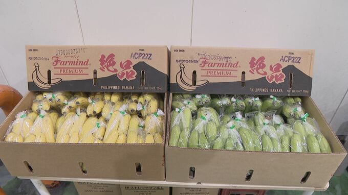 倉庫の中のバナナは、1週間ほどかけて黄色く色づかせた上で出荷となりますが…