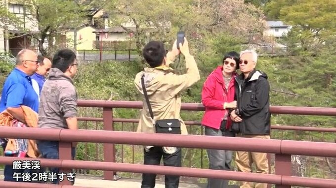 一関で最高気温25.2度 2026年県内初の夏日に 岩手 IBC岩手放送 2026年4月22日(水) 15:52 国内 一関市の観光地・厳美渓では、強い日差しが降り注ぐ中、記念写真を撮る台湾からの観光客の姿がありました。 【画像はこちらから】 県内は23日以降も高気圧に覆われるため、晴れる日が続く見込みで、今週末は行楽日和となりそうです。