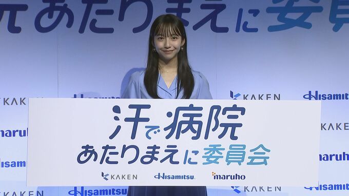 タレントの山之内すずさんが22日、「汗で病院あたりまえに委員会」プロジェクト発足式に登壇しました。