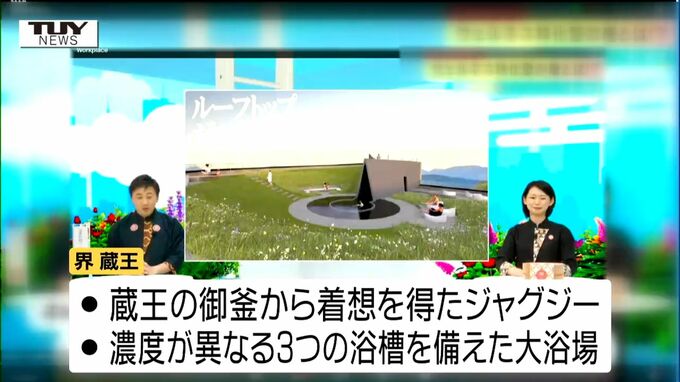 きょう開かれた発表会によりますと、施設の屋上には蔵王の「御釜」から着想を得た360度見渡すことができるジャグジーを設けるほか、蔵王温泉の強酸性のお湯をいかした濃度が異なる3つの浴槽を備えた大浴場が設けられます。