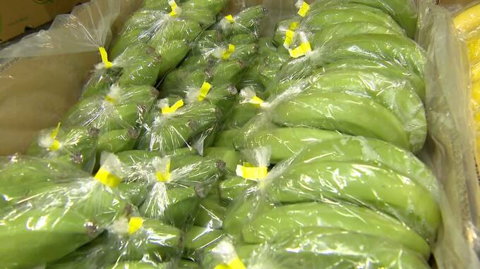 RKB 若松康志記者「美味しそうな黄色をしたバナナ、こちらも中東情勢の影響が懸念されているんです」