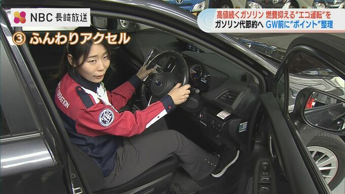 車が最もガソリンを消費するのは「発進時」です。アクセルを「ふんわり、ゆっくり、優しく」踏むことを心がけるだけで、燃費改善につながります。