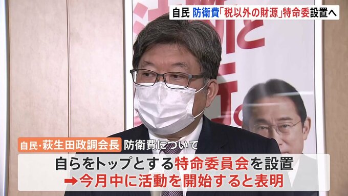 防衛費の増額をめぐり、自民党内に増税以外の財源について議論する特命委員会が今月中に設置される見通しとなりました。午前中に開かれた自民党の役員会で萩生田政調会長は、防衛費について「税以外の財源の具体的…