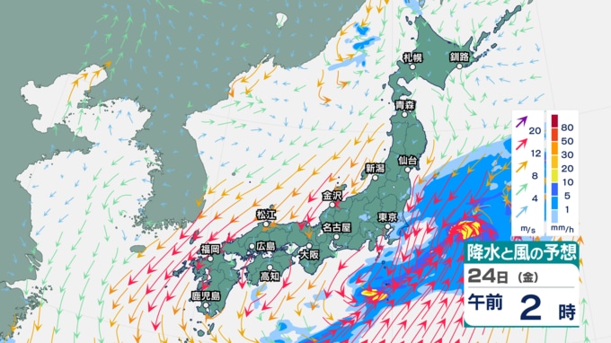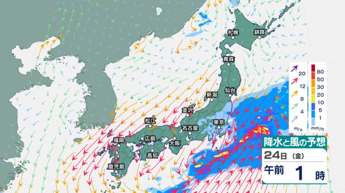 【大雨情報】あす24日にかけて西日本中心に大雨か 多い所で120ミリ予想も【近畿・四国・九州南部】雨と風のシミュレーション