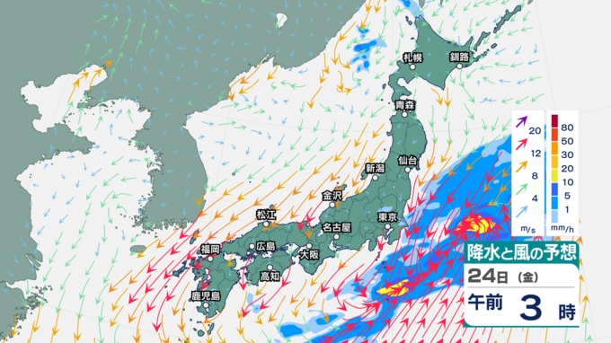 【大雨情報】あす24日にかけて西日本中心に大雨か 多い所で120ミリ予想も【近畿・四国・九州南部】雨と風のシミュレーション
