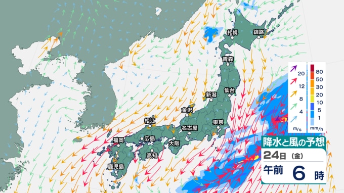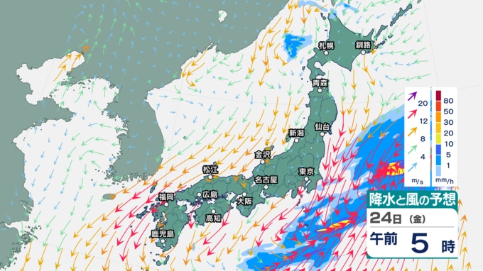 【大雨情報】あす24日にかけて西日本中心に大雨か 多い所で120ミリ予想も【近畿・四国・九州南部】雨と風のシミュレーション
