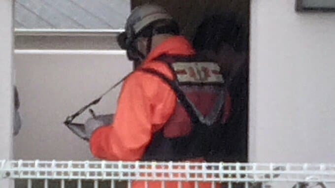 消防によりますと、午前6時52分、高松市鶴市町の共同住宅で訪問介護士から「火事です。ドアから煙が出ていて入れない」と119番通報がありました。消防車10台が出動し、火は約1時間半後に消し止められました。