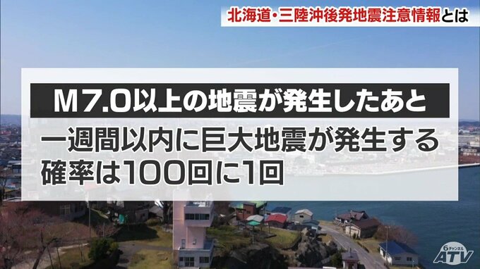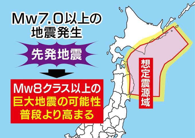 北海道から岩手県にかけての沖合に位置する「千島海溝」と「日本海溝」、またその周辺でマグニチュード7.0以上の地震が発生した場合に、さらに巨大な地震が発生する可能性が「普段より高まっている」ことを知らせるものです。