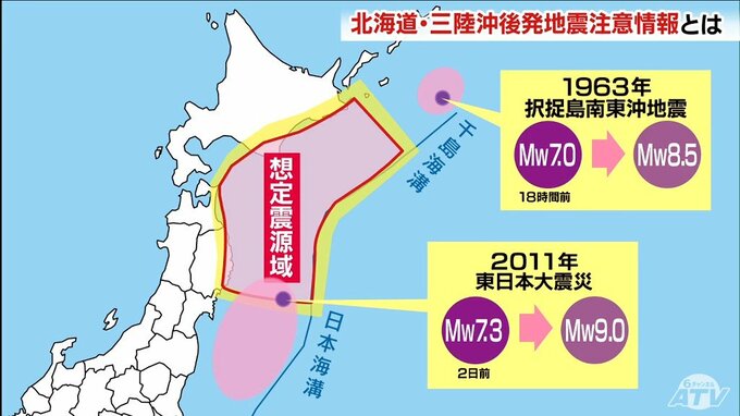 また千島海溝沿いでは、1963年にマグニチュード8.5の大地震が起きる18時間前に、マグニチュード7.0の地震が観測されています。こうした事例が、この情報制度の根拠となっています。