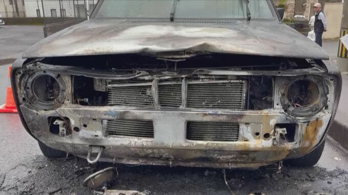 火はおよそ30分で消し止められましたが、乗用車のフロント部分が焼けました。