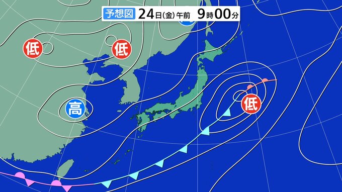 24日(金)は「低気圧」が離れていくため、天気は回復に向かうでしょう。