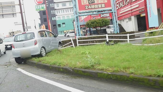 鹿児島市東郡元町の産業道路入口交差点で、23日午前9時ごろ、軽乗用車が道路脇のガードパイプに衝突しました。