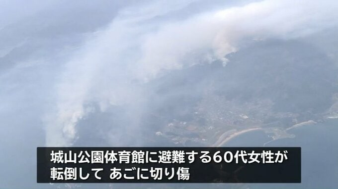 町によりますと、城山体育館に避難した60代の女性が転倒し、あごの付近に切り傷を負ったほか、小鎚地区で住宅など建物7棟に被害がありました。