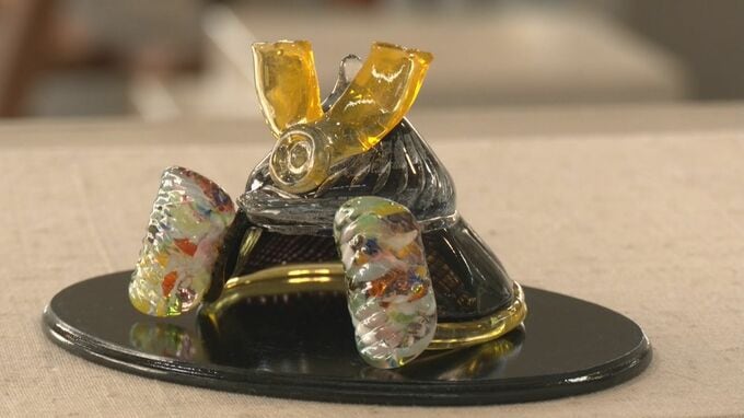 再生ガラスで「かぶと」や「こいのぼり」 端午の節句に向けて置物作り 丸みを帯びたかわいらしい形に 愛知・岡崎市