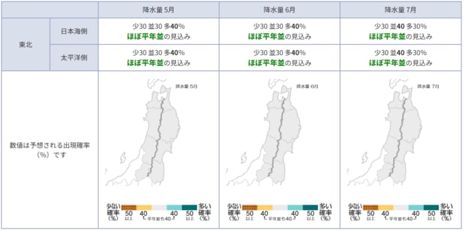 東北日本海側:ほぼ平年並の見込み 東北太平洋側:ほぼ平年並の見込み