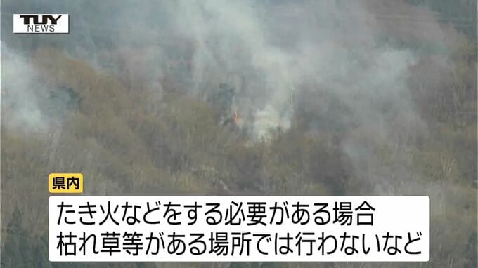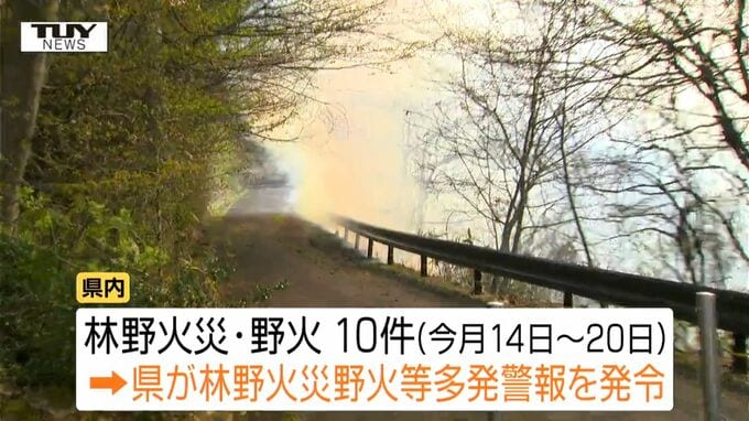 県は今月9日から来月12日までを林野火災特別警戒期間に設定しています。しかし県内では今月14日から20日までの1週間に林野火災や野火が10件発生していて、県がさらに林野火災野火等多発警報を発令しました。