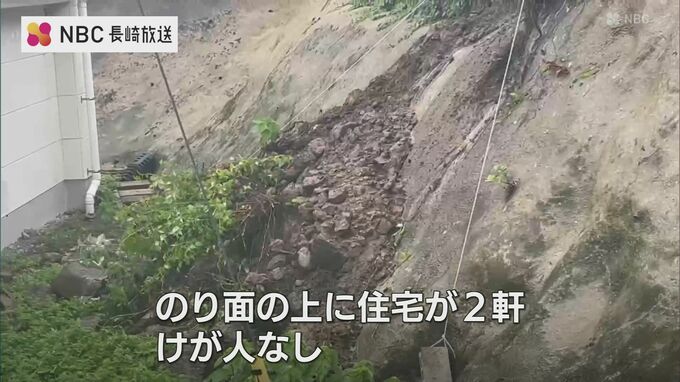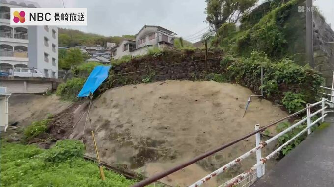 23日朝、長崎市で建物裏ののり面が崩れているのがみつかりました。