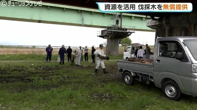 無料配布される樹木は直径10センチから20センチの、長さ約1メートルから1メートル20センチのもで、これ以下の小さなものや枝などは河川国道事務所が処分場に持ち込んでいるということです。