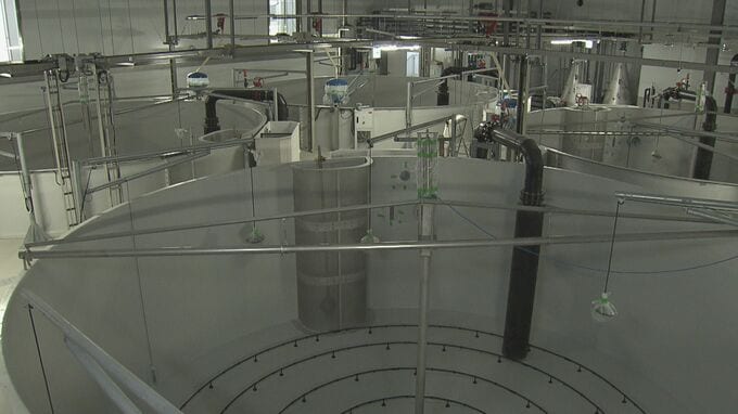 「ここは卵がふ化した後に、一番最初に魚が泳ぐタンクルーム。直径が4.6メートル・高さが1.8メートルある。魚に一番適した水温・水質を確保しながら、最適な環境を整えていく」