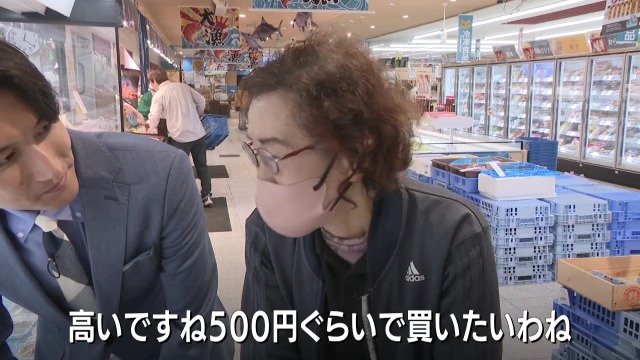 「高いですね、500円くらいで買いたい。特に魚が好きなので、堪えますね」