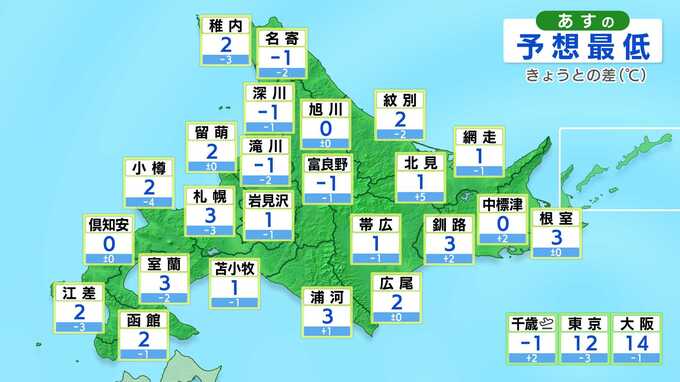 【北海道】あすは3月並みの寒気流入…峠は積雪のおそれ 一方で日曜日には20℃くらいまで気温が上がるところも《気象庁・雨と雪のシミュレーション》 北海道放送 2026年4月23日(木) 15:18 国内 天気 近藤肇 峠は積雪・凍結注意 24日の予想最低気温 石北峠や北見峠、三国峠などでは積雪状態になるおそれがあり、札幌近郊の中山峠も雪が降ることはありそうです。 いずれにせよ、氷点下の寒さになることで、所々で路面が凍結しそうで、夏タイヤでの走行は危険になります。 ▶《画像で見る》気象庁シミュレーション【雨と雪の予想】