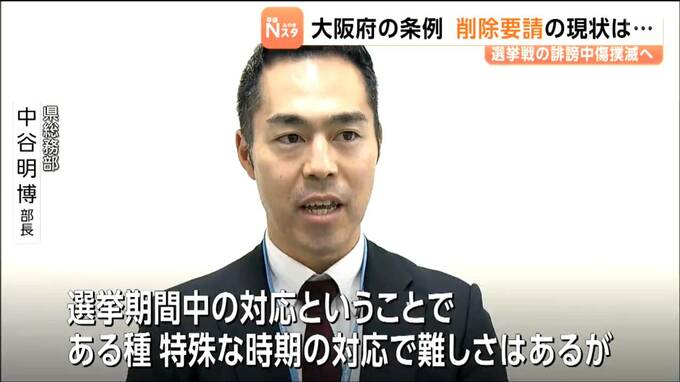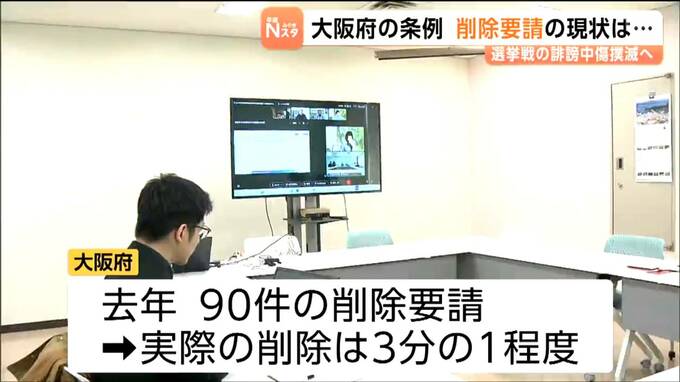 大阪府では、選挙運動に限らずインターネット上での誹謗中傷を防ぐ条例が制定され2024年からは府が、条例に基づきプロバイダーに削除要請できるようになりました。2025年の1年間で90件の削除要請をしたものの、実際に削除できたケースは3分の1程度だった現状が紹介されました。