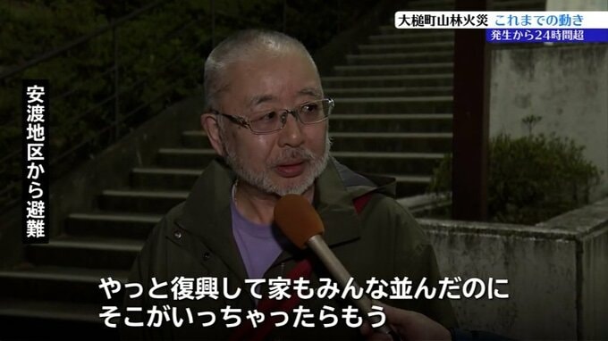 「雨が降るのが一番だけど降りそうもないし、この風だから。やっと復興して家もみんな並んだのに、そこがいっちゃったらもう。大変だな。目も当てられない。せっかく何もないところから復興したのに…」