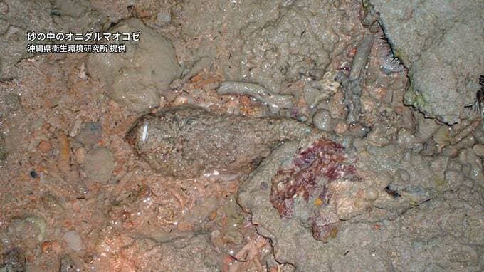 県衛生環境研究所によりますと、オニダルマオコゼは浅瀬の岩場や水中の砂に潜む魚で、背びれには毒がある硬いトゲを持ち、踏むとサンダルなどを貫通する可能性もあります。