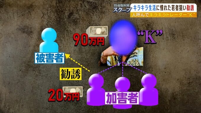 K氏の言うビジネスとは、いわゆるマルチ商法。K氏に勧誘された被害者がさらに金儲けをしたい若者を勧誘する。勧誘が成功すればコンサル料110万円のうち、勧誘した者は20万円、残りの90万円はK氏が受けとり、まさに被害者が加害者となるシステムだった。