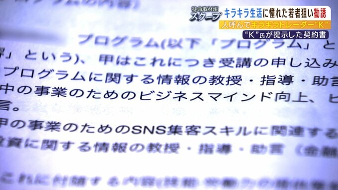 K氏が提示した契約書には、「ビジネスマインドの向上」などと書かれているだけで、具体的な稼ぐ手段について一切記載がない。