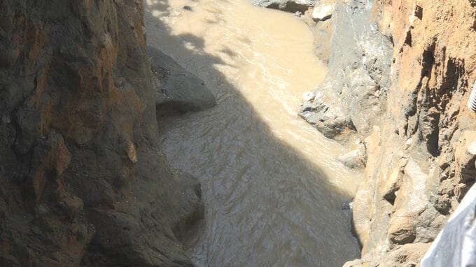 コンクリート製水路つくり、片側交互通行に