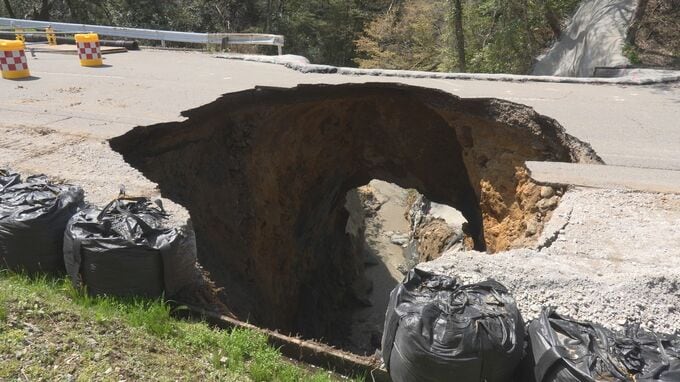 4月11日、石川県金沢市の山間部を通る県道で大規模な陥没が見つかり、通行止めが続いている問題で、石川県は7月をめどに、新たなコンクリート製の水路をつくり、片側交互通行を開始する見通しを明らかにしました。