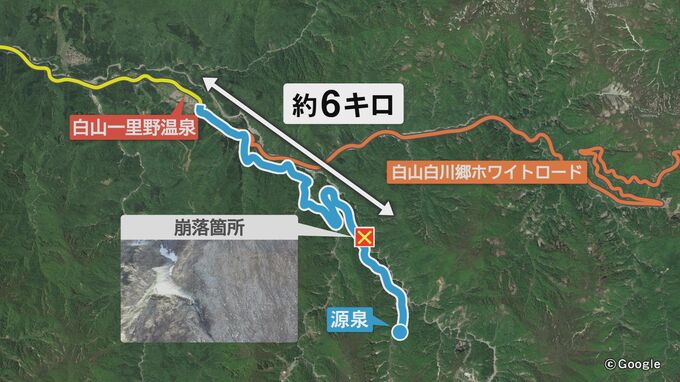 斜面は人が立ち入らない冬の間に崩れ落ちたとみられ、宿泊施設では崩落が見つかる前から温泉が滞り始めていました。