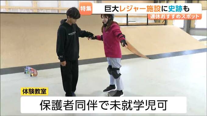 ボードやヘルメット、プロテクターをレンタルすることができて、手ぶらでも大丈夫。体験教室は、保護者同伴なら未就学児でもレッスンが受けられます。