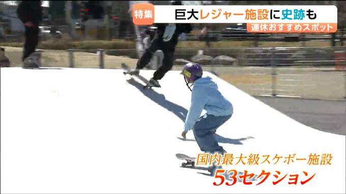 スケートボードの施設としては国内最大級の広さで屋外と屋内、あわせて53のセクションが整備されています。