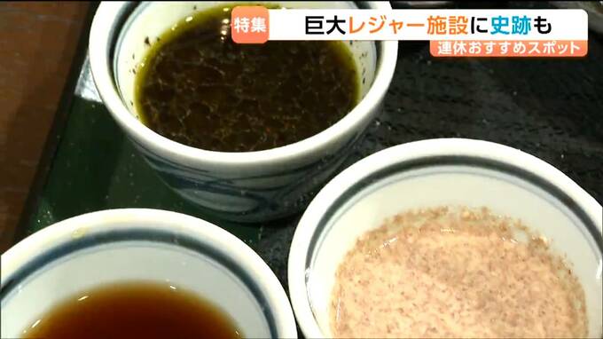 かつおだしの醤油とくるみベースのみそ、それに七ヶ浜産の海苔を使ったのりだれで味わいます。