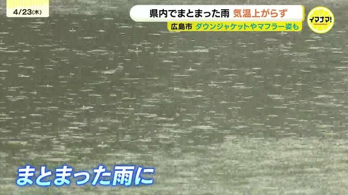 前線や湿った空気の影響で、広島県内では22日からまとまった雨が降りました。23日は日中の気温が上がらず、広島市では、ダウンジャケットやマフラーを身につける人も目立ちました。